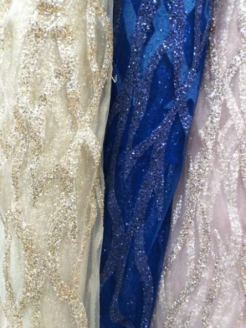 Kain Tille Tulle Candy Crush Glitter Motif Baru Kebaya Dress Gaun