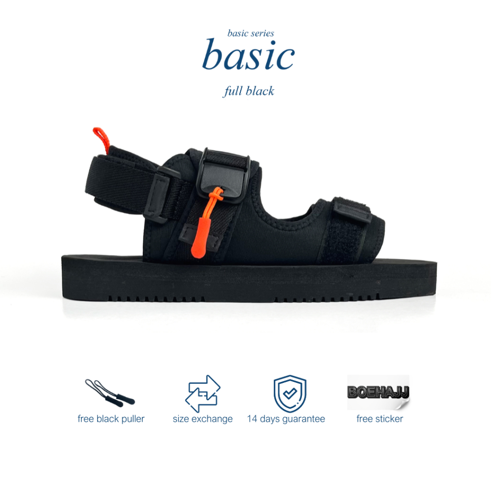 Boehajj - Basic - Full Black - Sandal Tali Gunung Pria Wanita Travelling Casual