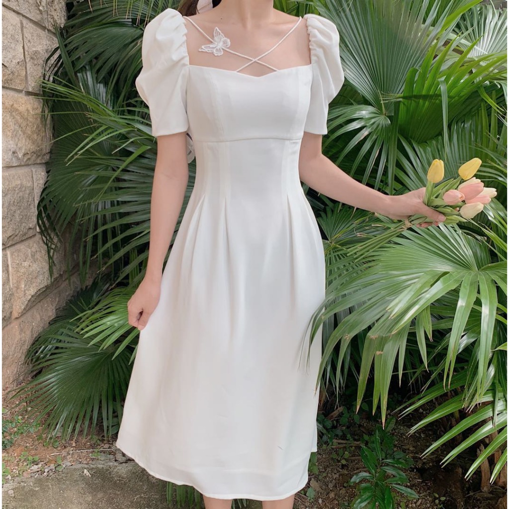 MISS EMITA Baju Elegant Party Black Dress Bodycon Midi Hitam Lengan Pendek Wanita Korean Style Dress Terbaru 2025 Import
