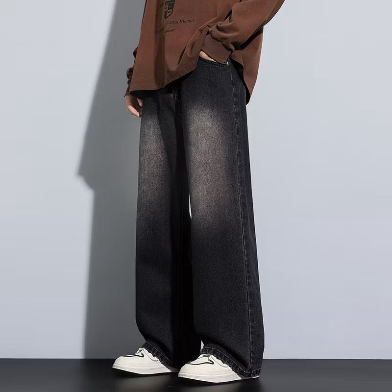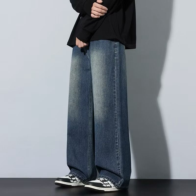 Celana Jeans Panjang Pria Koreanstyle Celana losefit Wisker Retro/Beggy Jeans Pria Gombrong Unisex