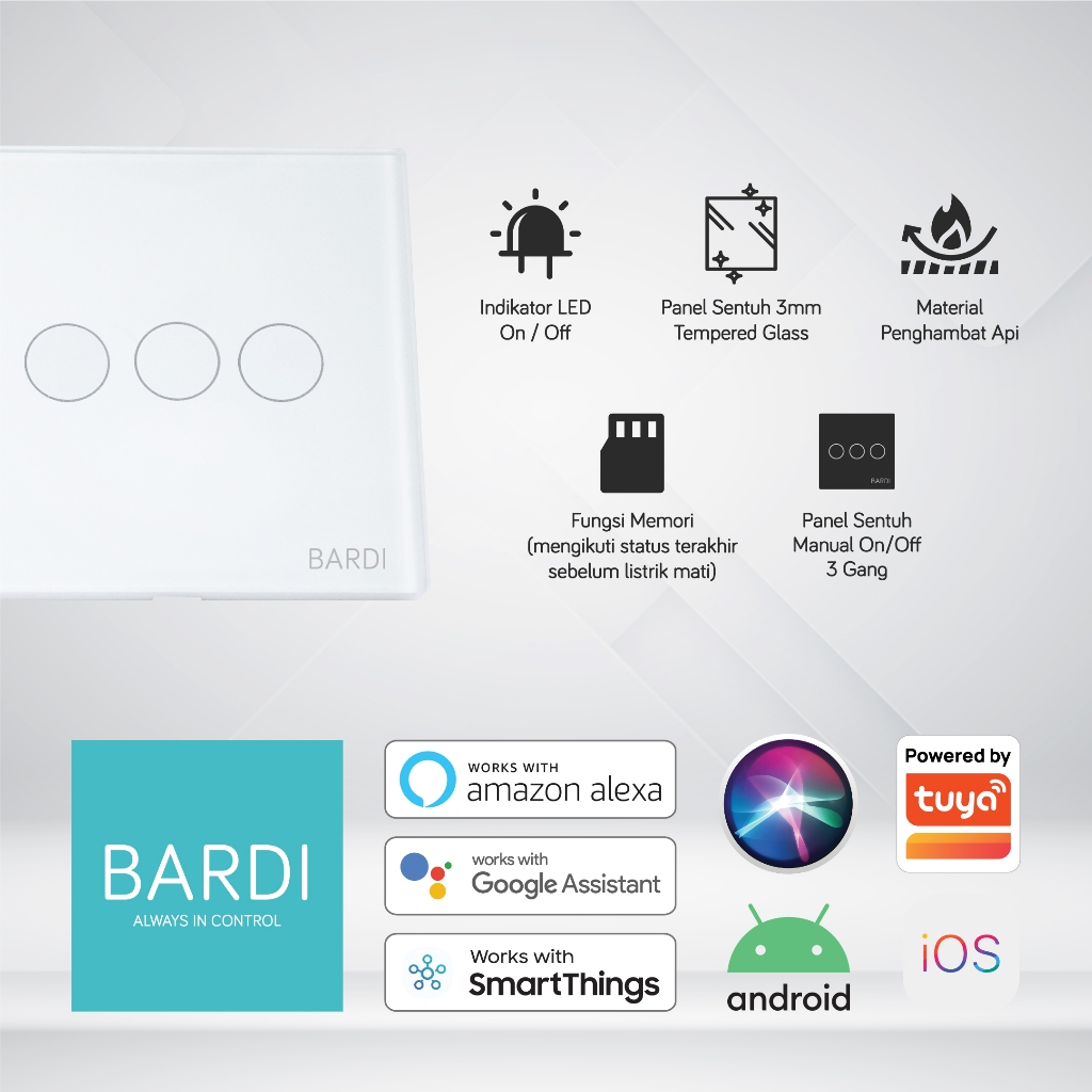BARDI Wall Switch Smart Touch Saklar Sentuh 1 / 2 / 3 Gang White Putih / Black Hitam Otomatis