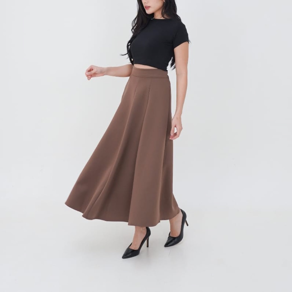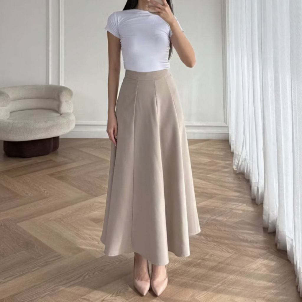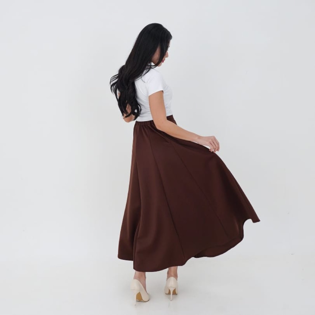 Audy Skirt - Korean Loose Maxi Skirt Rok Wanita Anti Kusut lyester - Rok Flare Wanita - Rok Basic los - Maxi Skirt Rok Panjang Wanita
