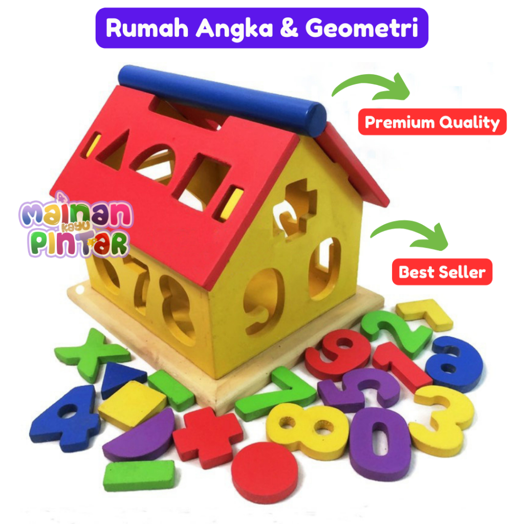 Rumah Angka Geometri Edukasi Anak Kayu Aman