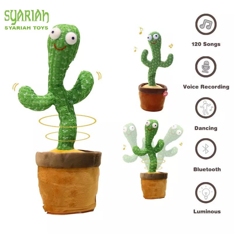 SYARIAH TOYS CACTUS DANCING Mainan kaktus joget goyang bisa menari rekam bicara dance versi baru BATERAI CAS