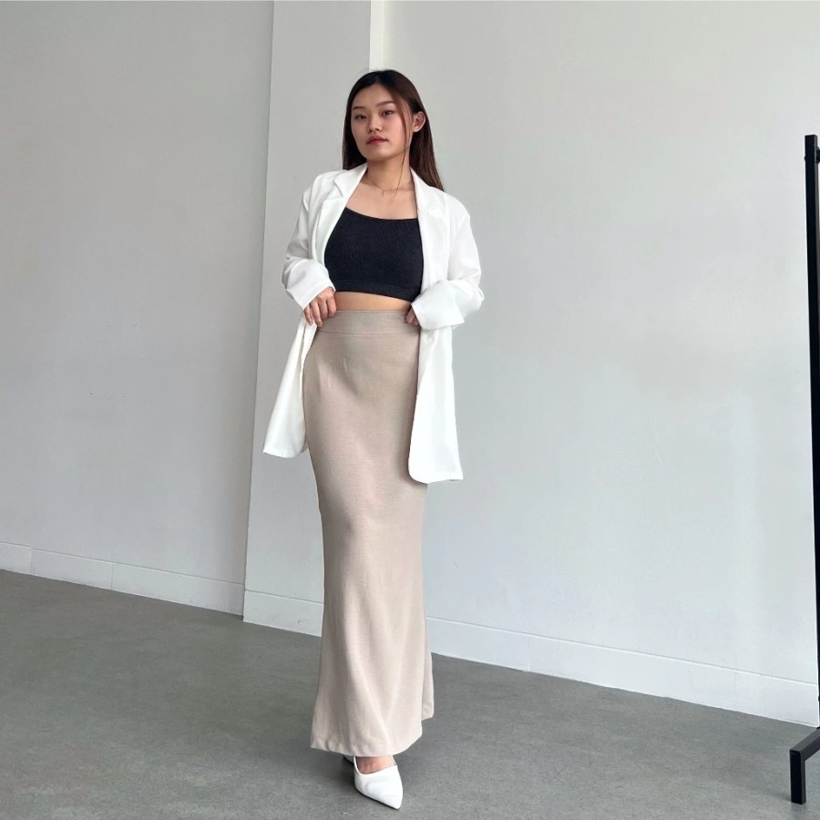 Kawisari - Lunar Mermaid Skirt - Scuba Premium Rok Flare Wanita Basic los - Maxi Midi Rok Panjang Wanita Adem Melar Elegan Kekinian
