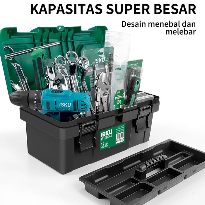 TOOL BOX BESAR ISKU TOOLBOX PERKAKAS PLASTIK BAHAN TEBAL - 12 INCH