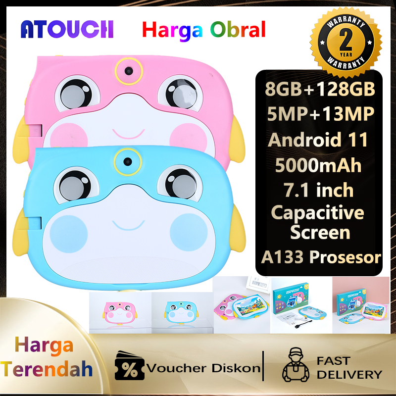 ATOUCH 8GB+128GB Study Anak Tablet Anak Android13 Belajar Anak Edukasi Tablet