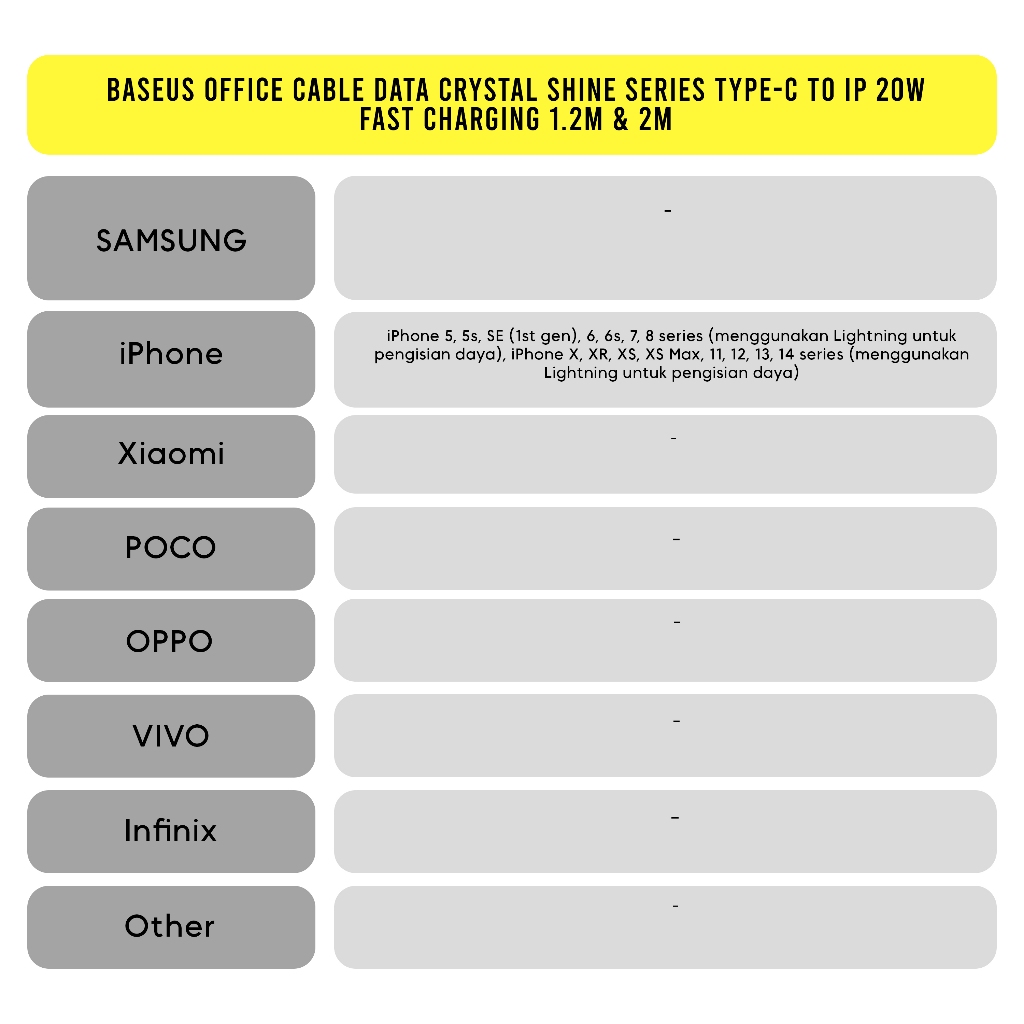 Baseus Kable Data Crystal Shine Series Type-C to iP 20W Cable Fast Charging 1.2m & 2m