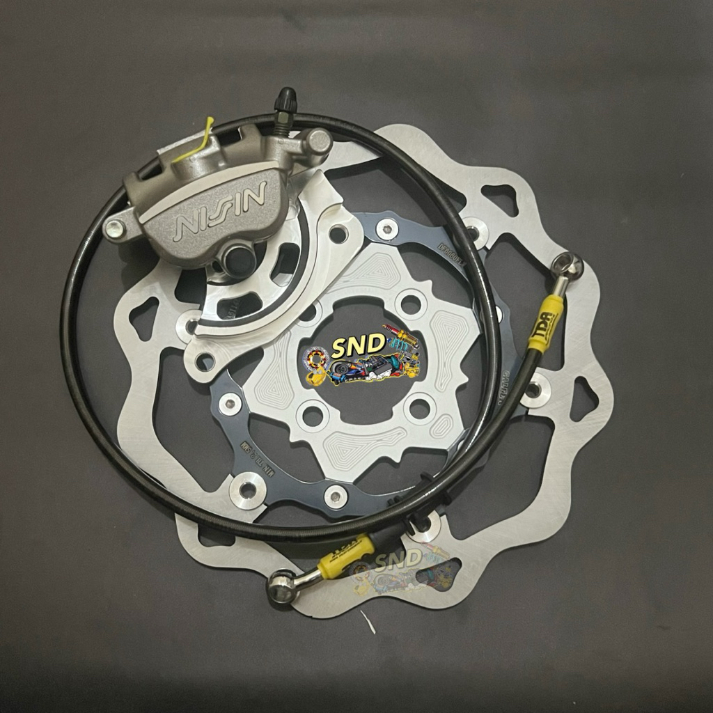 Paket Kaliper Nissin 2P Plus Breket Cnc Selang Rem Carbon Dan Disc Piringan 260mm Mio Smile Soul Karbu