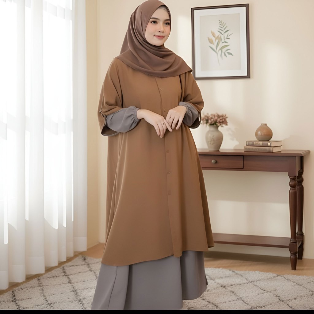 Samira Dress Set Hijab Dewasa Crinkle Premium Busui Friendly Setelan Rok Syar'i