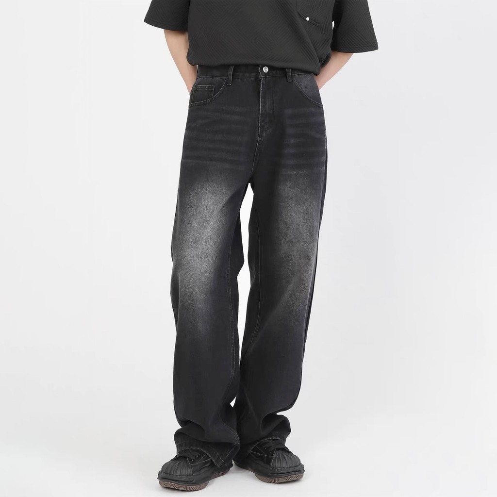 Celana jeans pria panjang baggy hitam straight celana denim dewasa kulot loose jumbo cowok korean