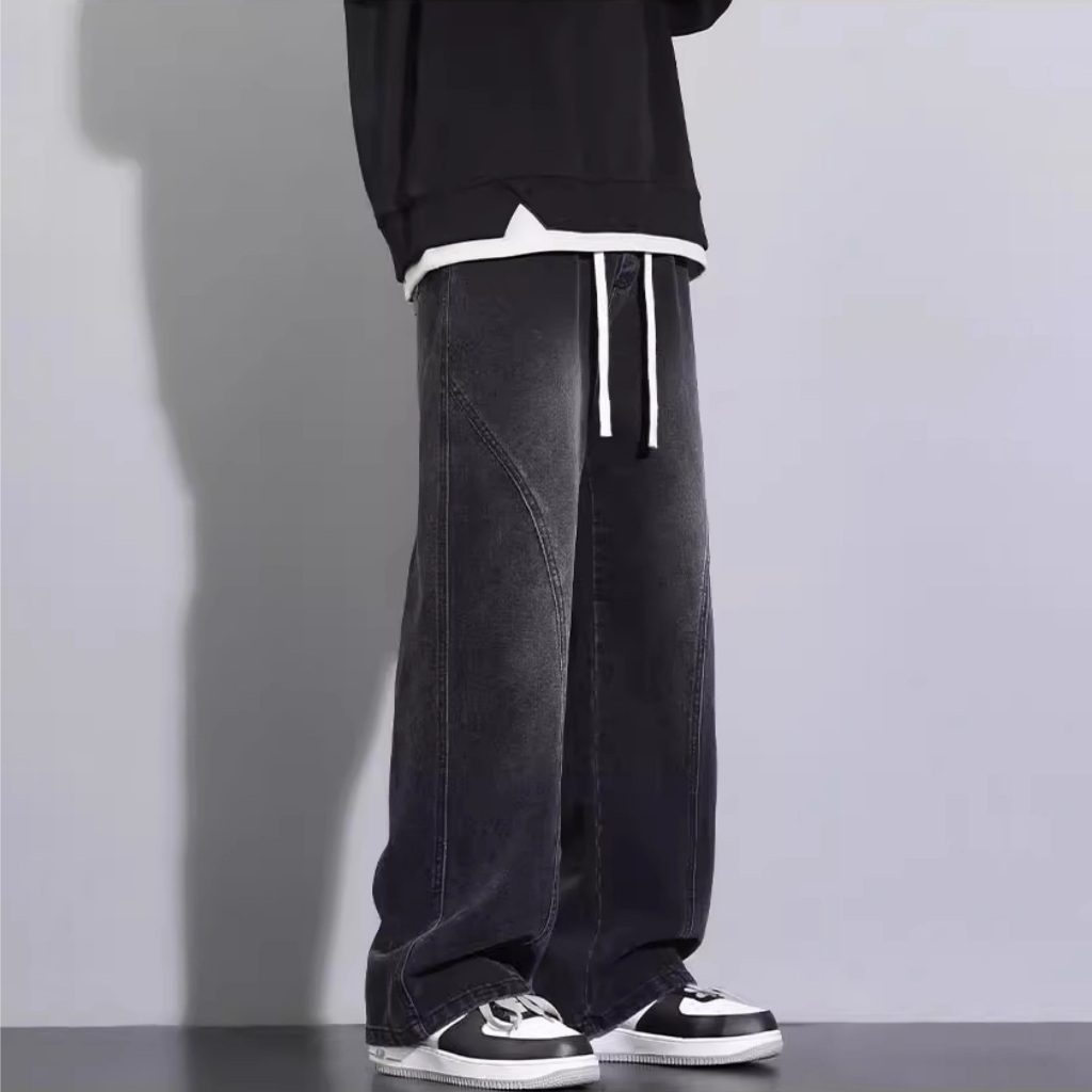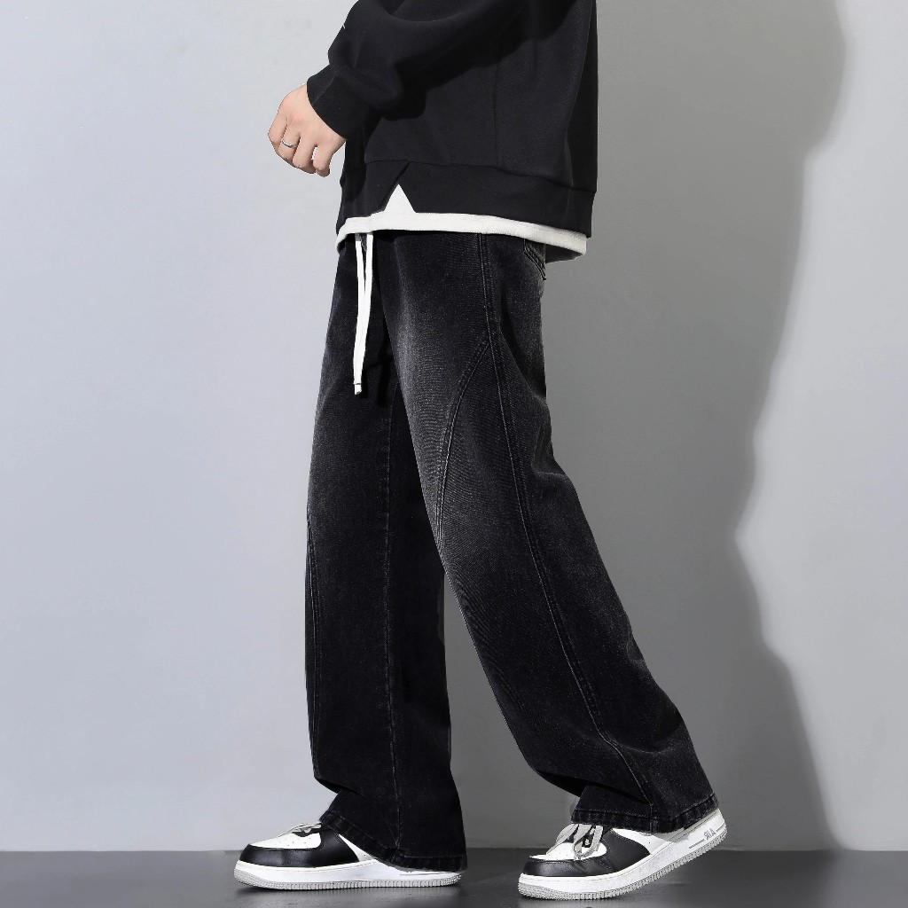 KeyBoy celana panjang pria jeans baggy straight cut casual loose pinggang karet denim pants korean style