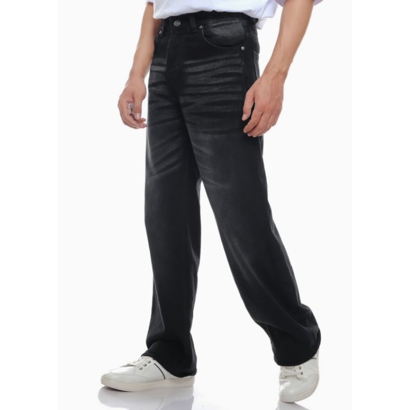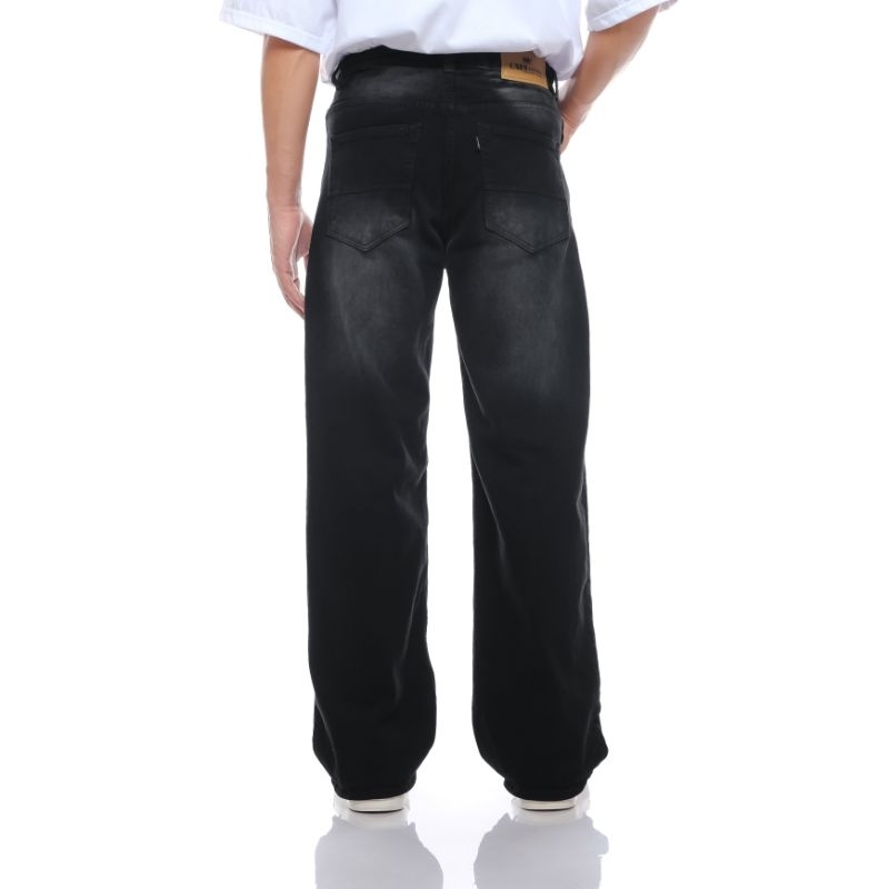 Celana Jeans Panjang Pria Skena Wide Leg Black Wishker Basic Baggy Pants Lebar Gombrong Hitam Pria Lost Fit Jumbo Big Size S - 3Xl (28-38) Bahan Denim Non stretch 13 OZ