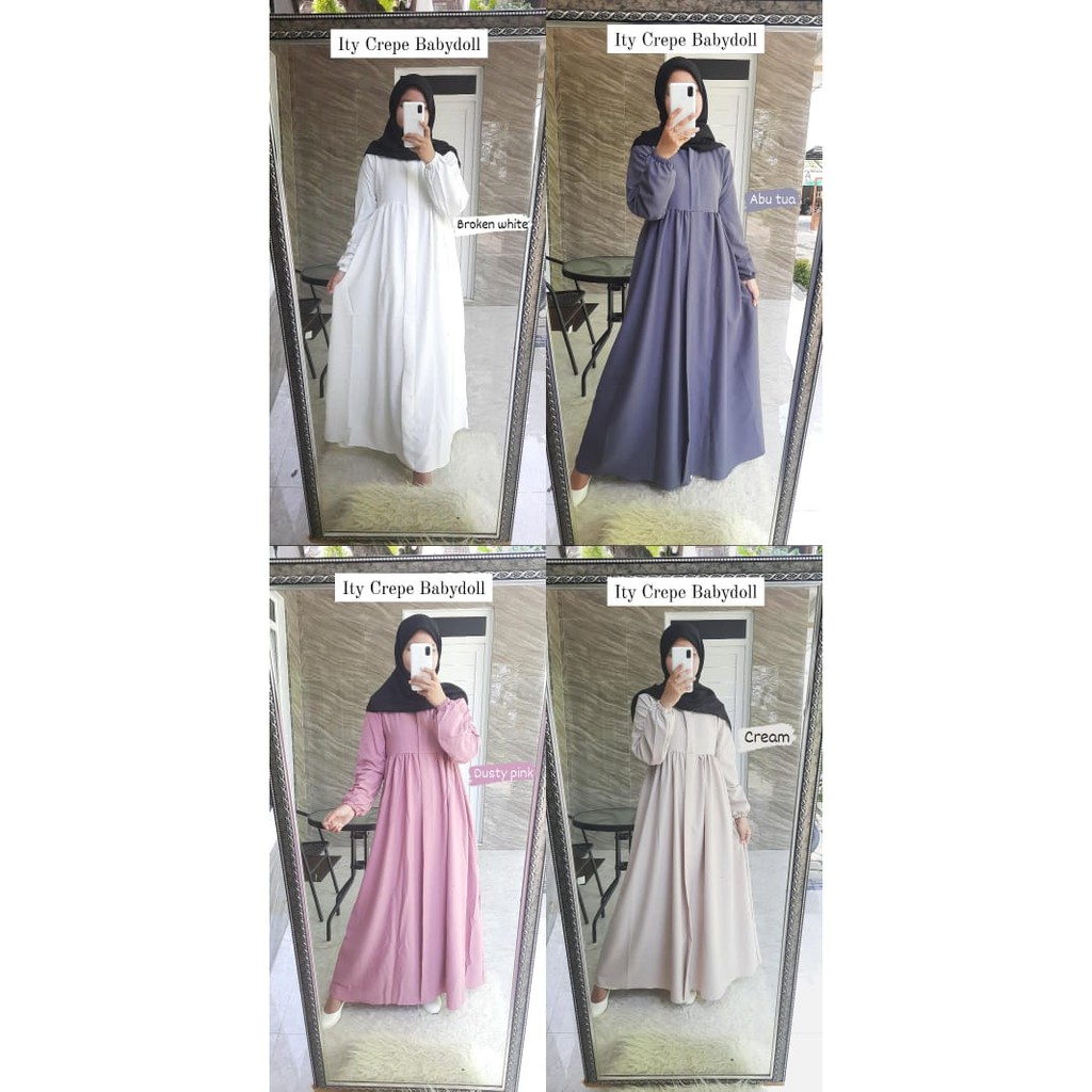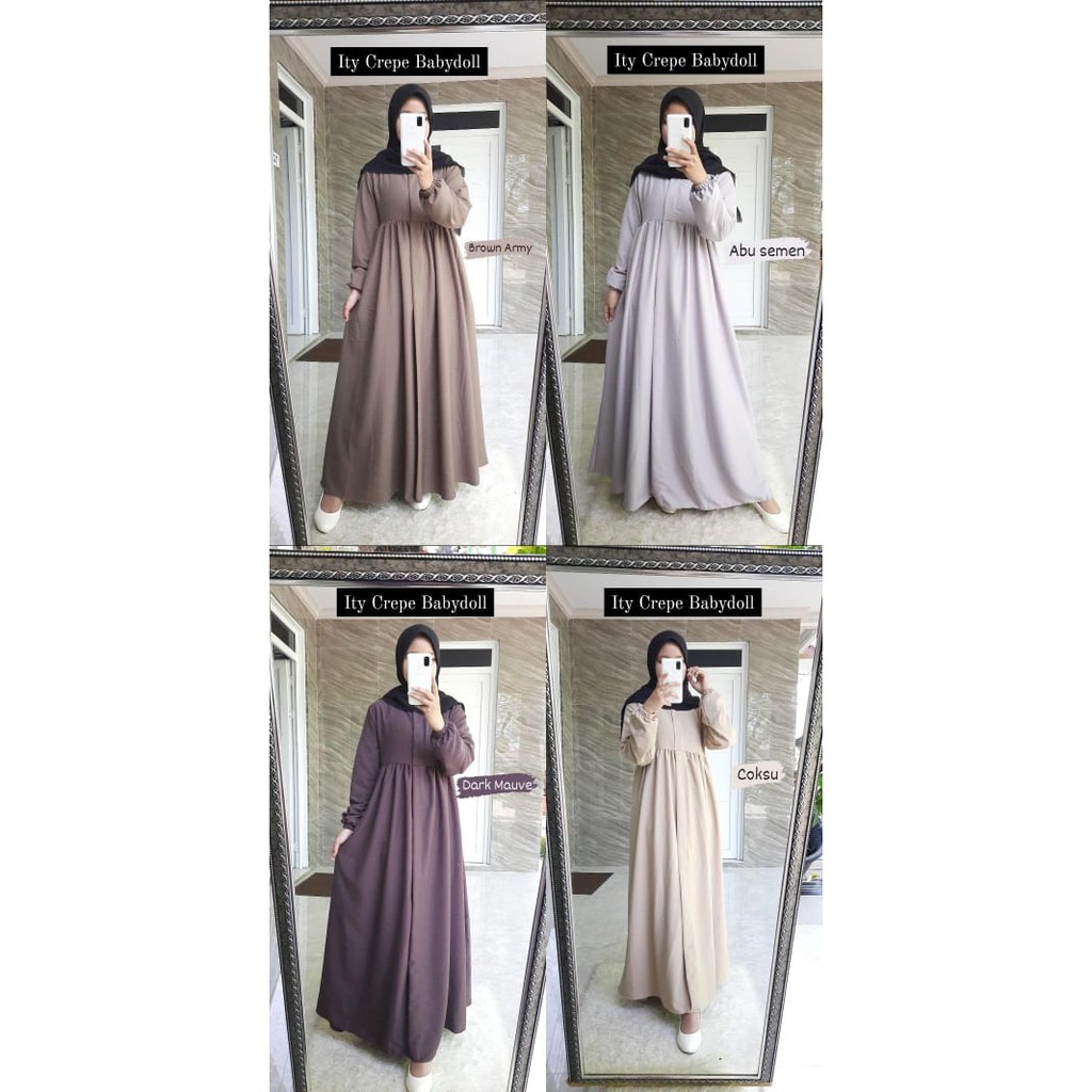 Dress Babydoll S-XXXL Ity Crepe Basic Gamis Polos SERI 1