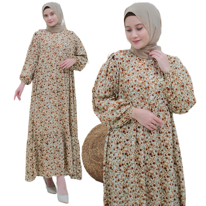 [Vican] Terbaru Alesa - Livia Midi Dress Gamis Rayon Motif Mix Airflow Busui Kancing Aktif Original By Vican