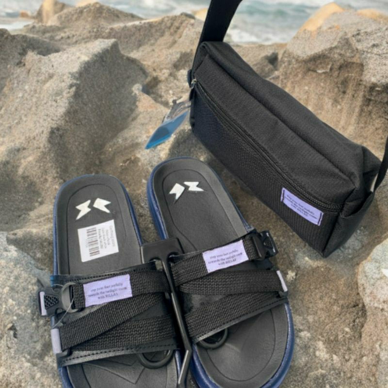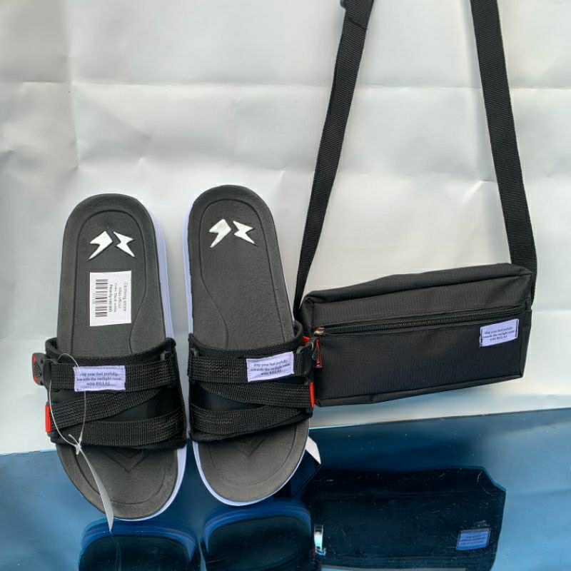 sandal selop / sandal slide + gratis tas slempang kren / sandal pria & wanita-rillas terbaru