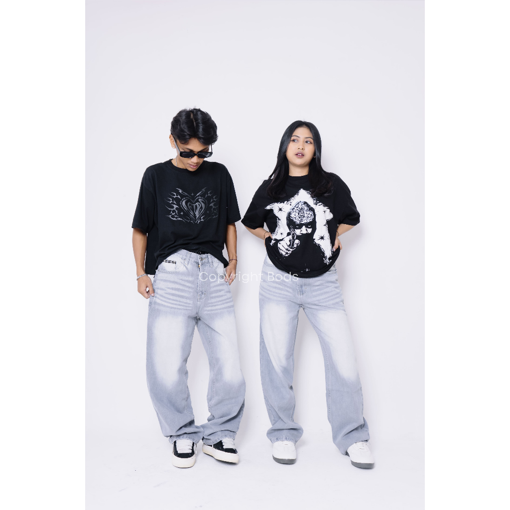 Celana Jeans Wide Leg Gombrong Baggy Loose Pria Dan Wanita