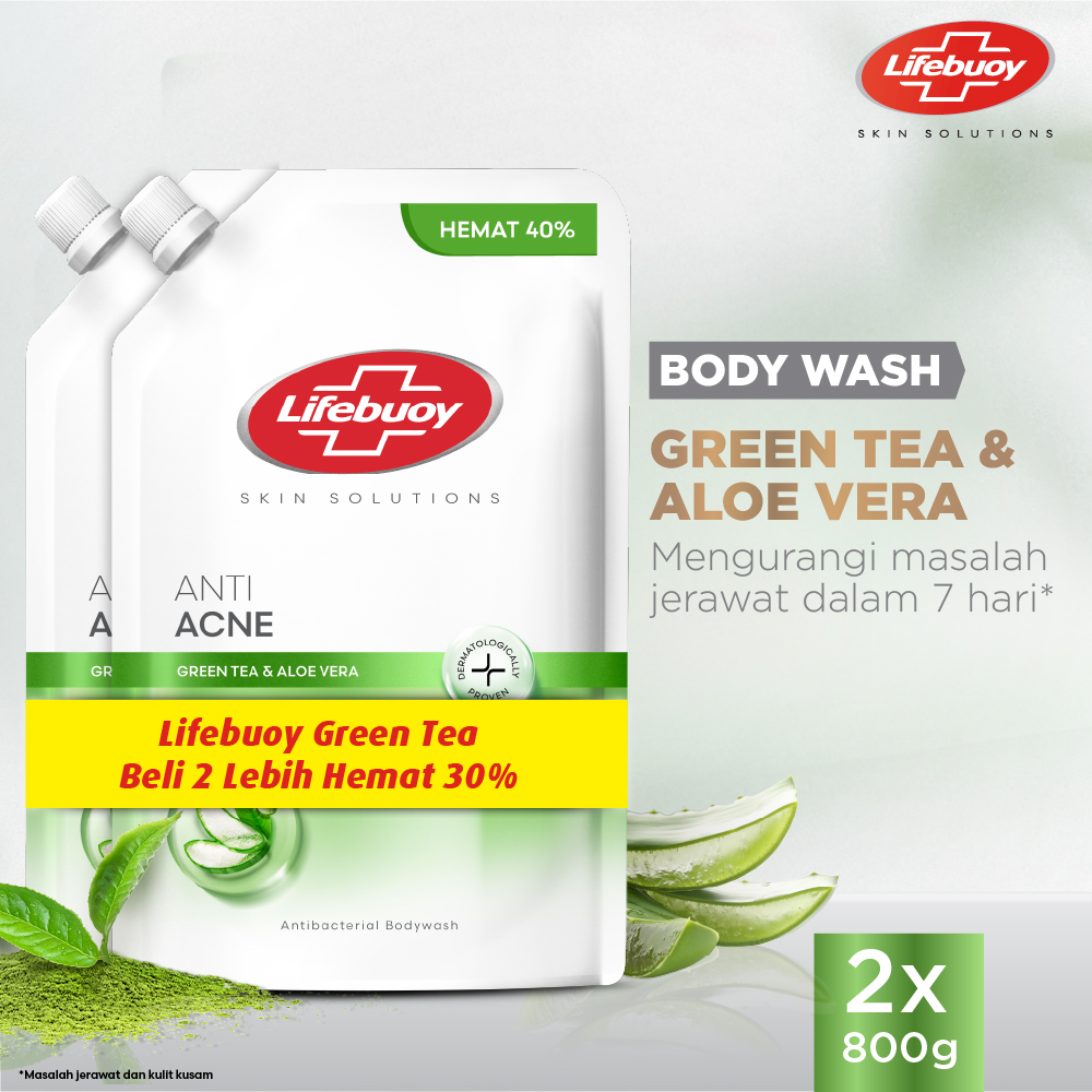 [BELI 2 LEBIH HEMAT 30 PERSEN] LIFEBUOY SABUN MANDI CAIR GREENTEA REFILL 800G x 2