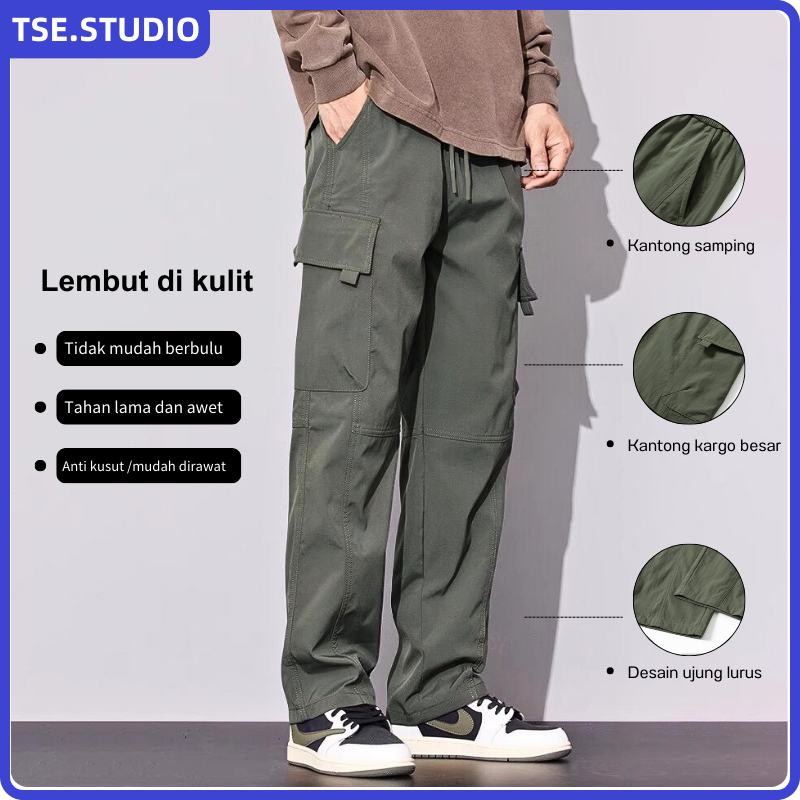 Celana Cargo Pria Korean Style Loose Straight Pants NEW Baggy Big Pockets Cargo Pants Oversize