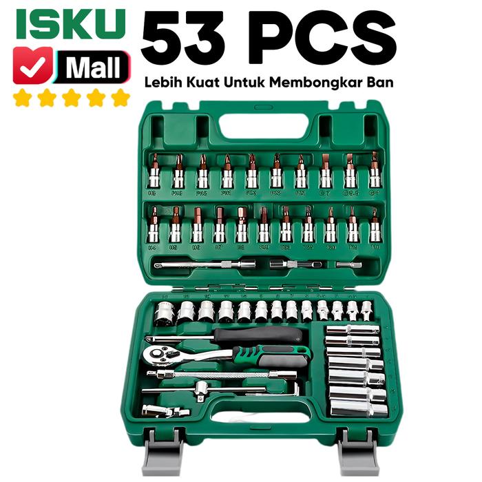 ISKU KUNCI SHOCK SET 53PCS 14" 24GIGI72 GIGI BAHAN BAJA KROM VANADIUM TAHAN LAMA ANTI KARAT SET SOCKET FULL TOOL KIT 20PCS KUNCI MATA SHOCK DAN 21PCS DRILL BIT - 53PCS72GIGI