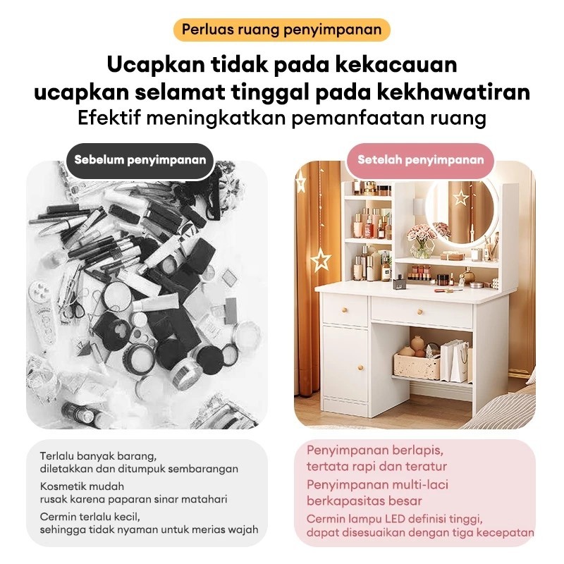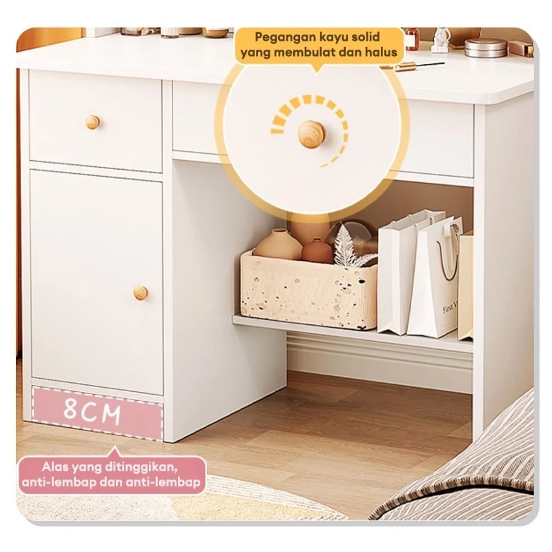 Damaindah Meja Rias Set Kursi Pita / Meja Rias Lampu LED/Meja Rias Aesthetic/Minimalis/Mini/Modern/Nordic/Murah