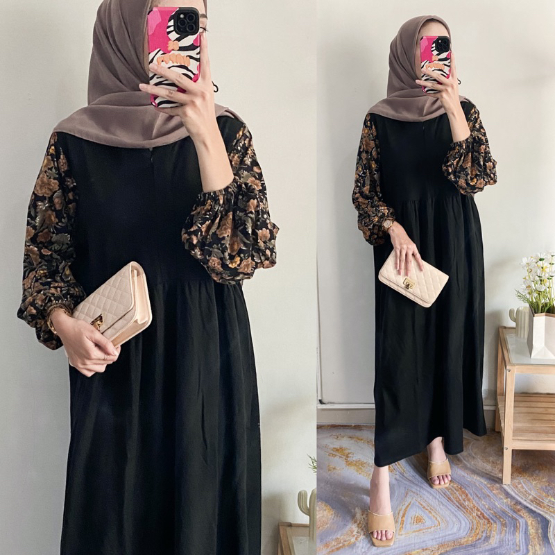 Balena Midi Dres Kaos Combed Motif Kombinasi Busui Wanita