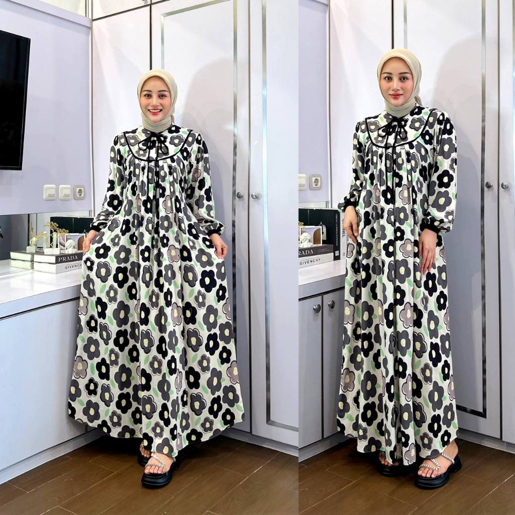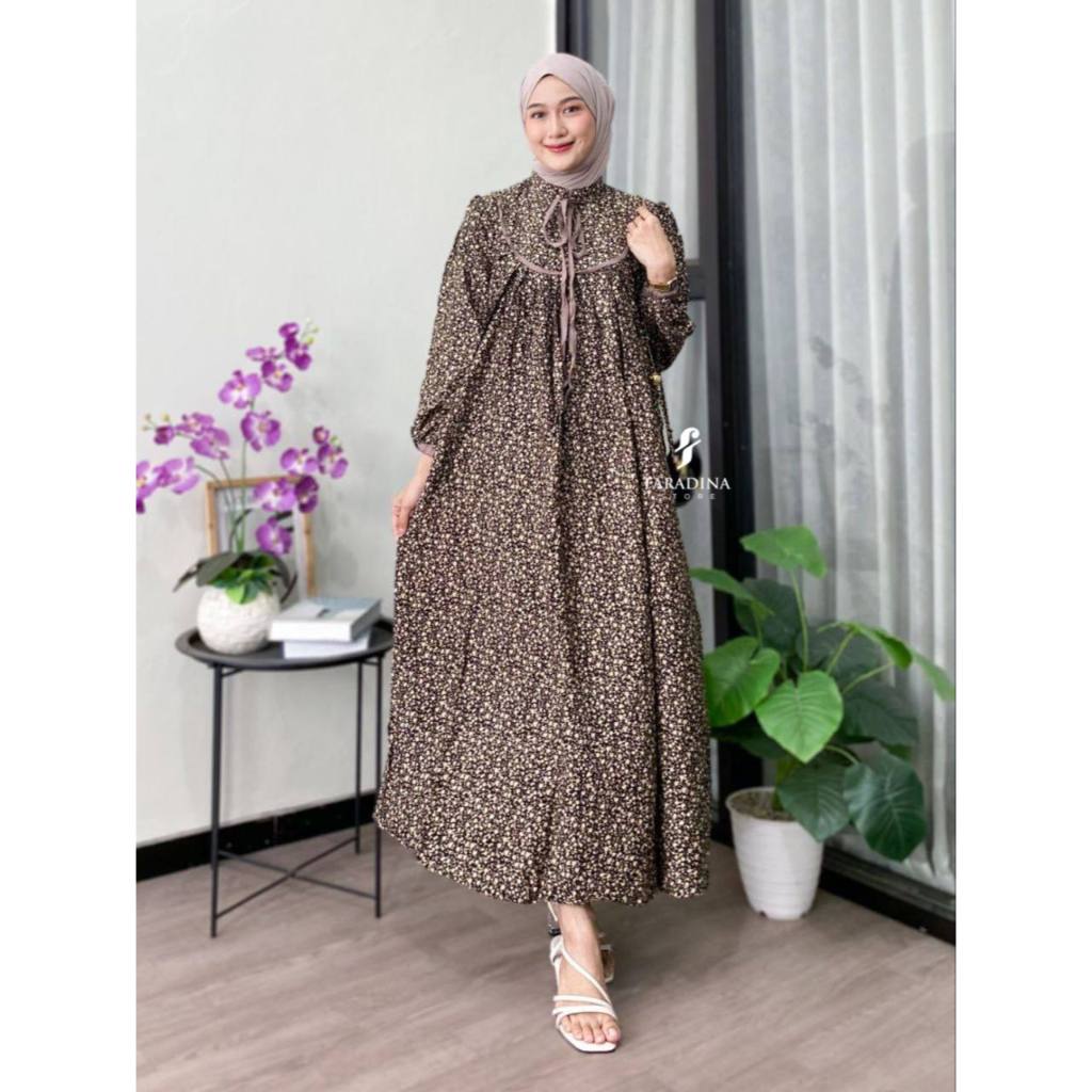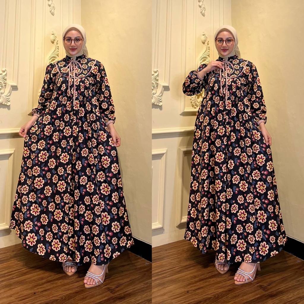 Faradina Exclusive Listya Dress Gamis Motif Premium Aksen List Busui Friendly Samping Wanita