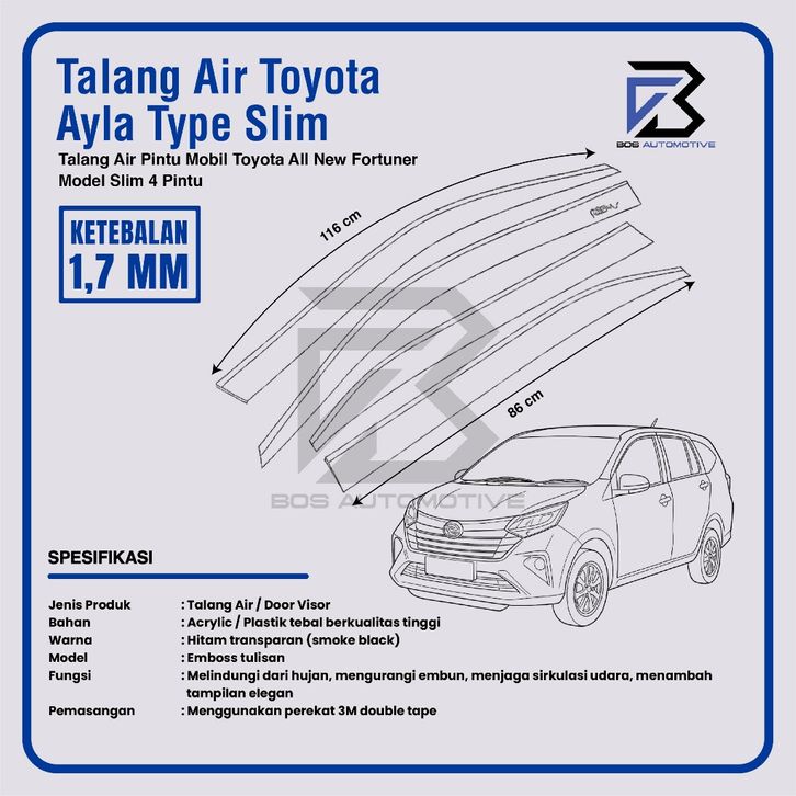 Talang Air Pintu Daihatsu Ayla 2012–2019 Model Slim 4 Pintu