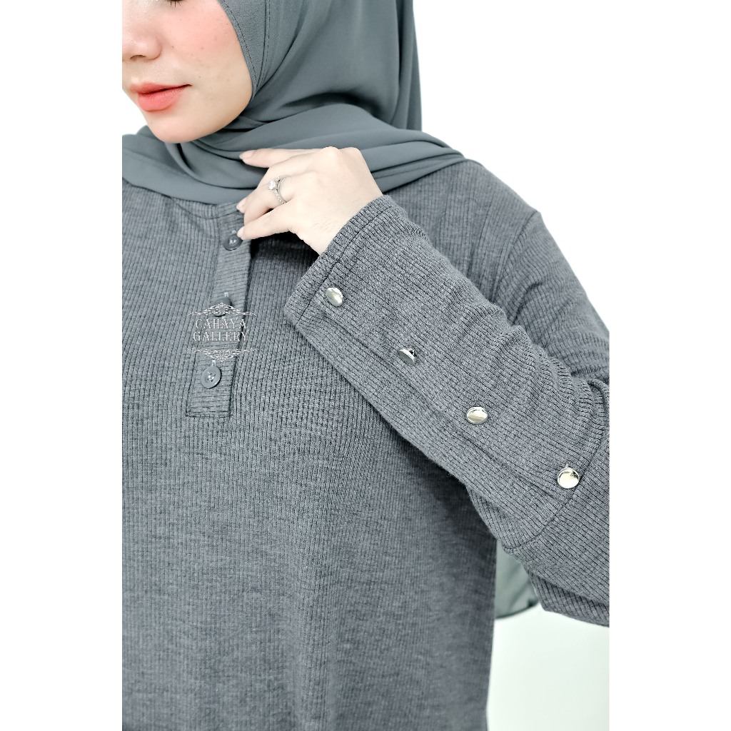 Keyra Dress Batwing Button Knit Premium - Gamis Casual Simpel Panjang Muslim Sporty Busui