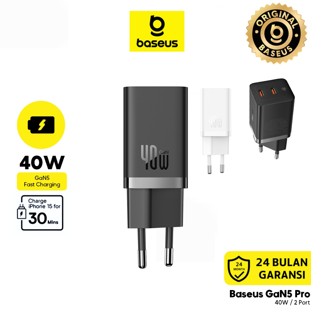 Baseus Charger GaN5 Pro C+C 40W Cooling System Pengisi Daya Cepat Fast Charging Cut Off