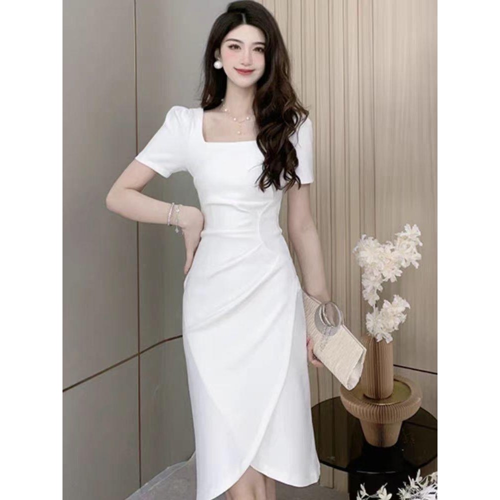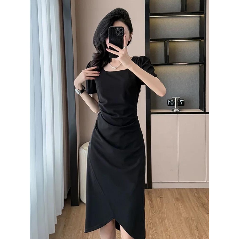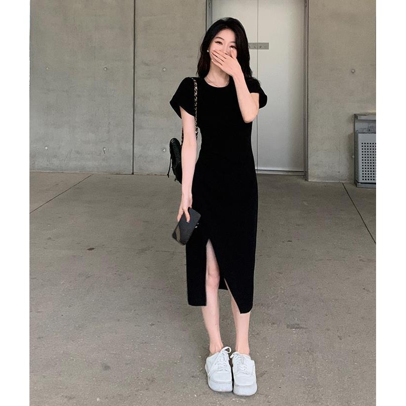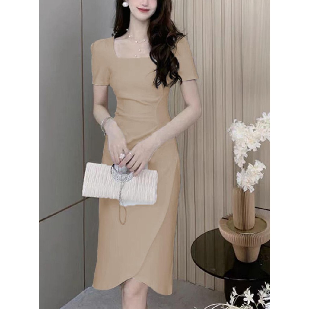 YIMITA midi dress hitam press body panjang Wanita party dress Korean Style Aesthetic baju undangan wanita simple pesta m