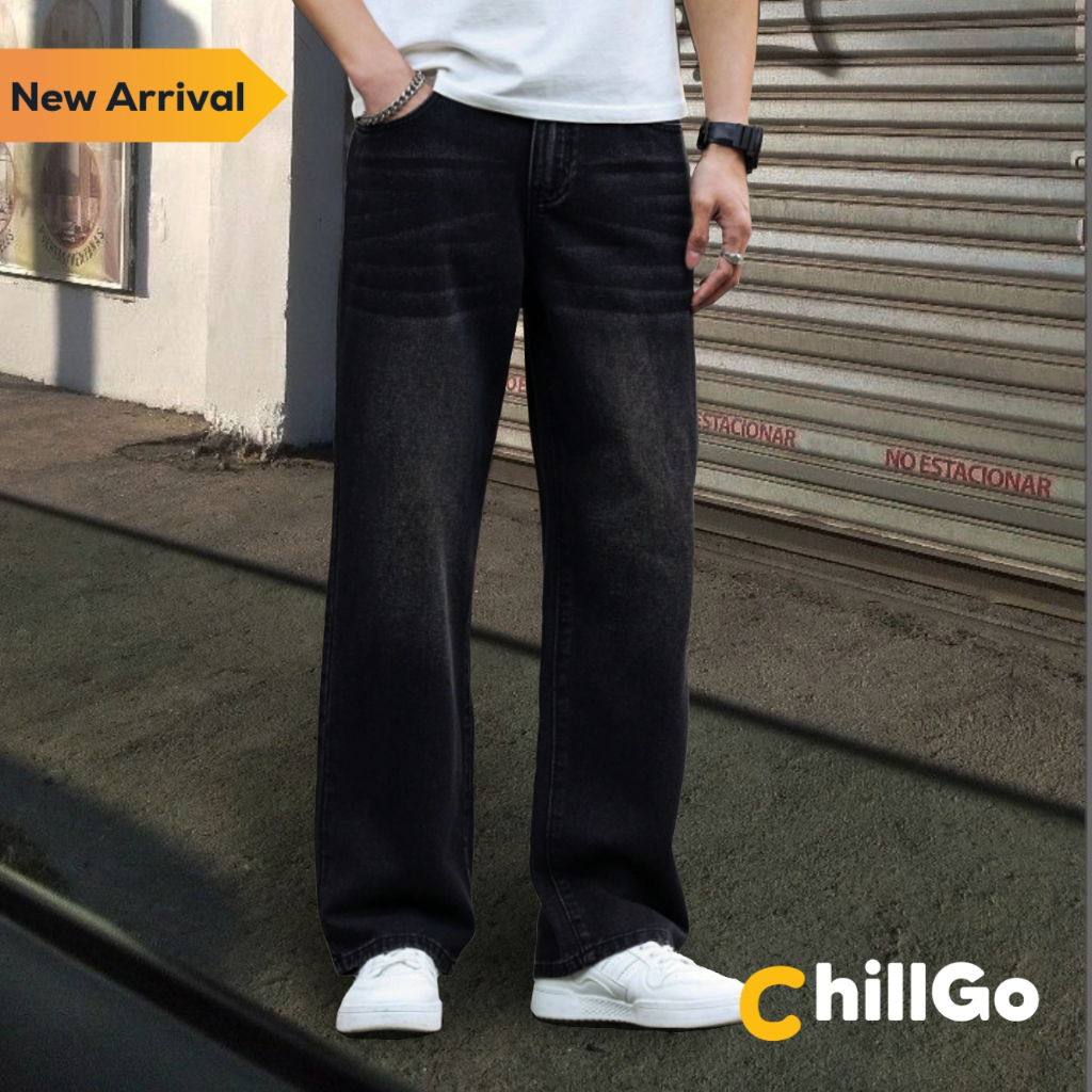 ChillGo | Celana Jeans Panjang Baggy Loose Fit Oversize Skena Korean Style Whisker Unisex
