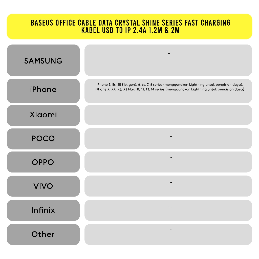 Baseus Cable Data Crystal Shine Series USB to iP 2.4A Fast Charging Kabel 1.2m & 2m