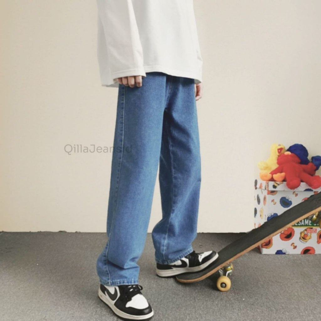 Celana Jeans Pria Baggy Pants Korean Style Oversize Loose Blue Jeans Straight Kulot Boyfriend
