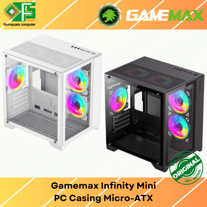 Gamemax Infinity Mini White Black | Casing PC M-ATX ITX | CPU PC Case Gaming