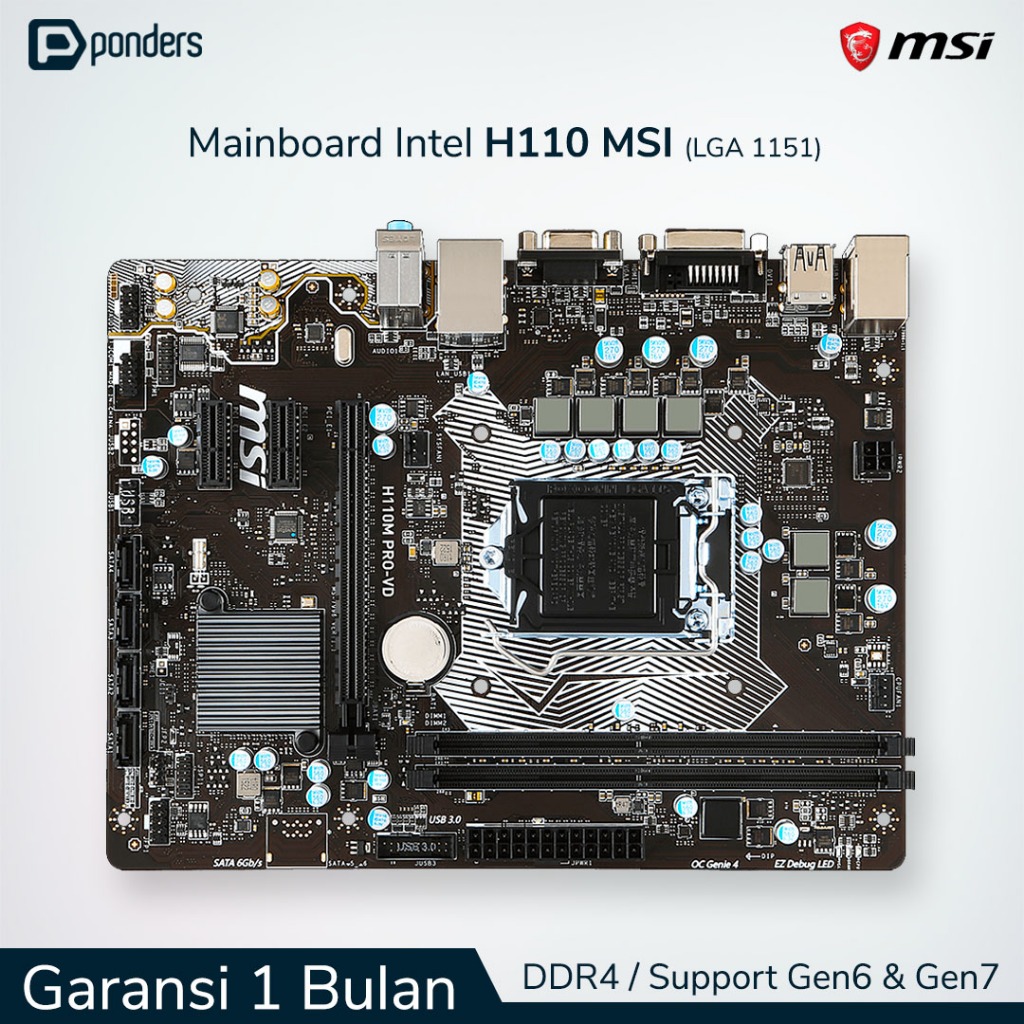 Mainboard Intel MSI H110 LGA 1151 DDR4 Support Gen 6-7