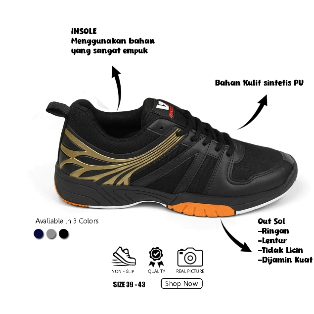 Brozzy Sepatu Badminton Pria Bz51 Sepatu Olahraga Bulutangkis Lari Joging Senam Original Kuat
