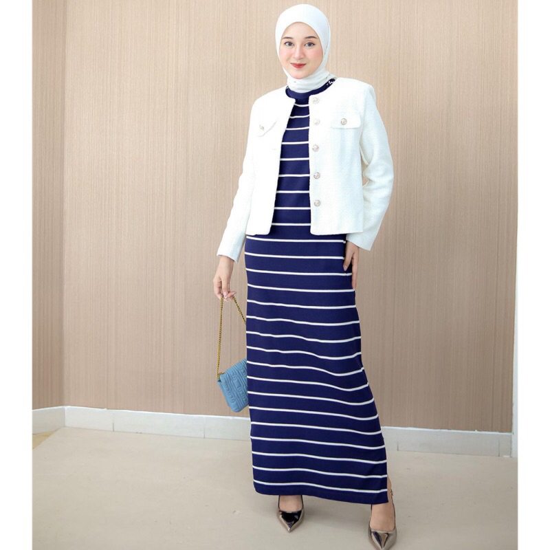 Long Dress Rajut Premium Basic Inner Span Strip Tanpa Lengan - 3 ukuran
