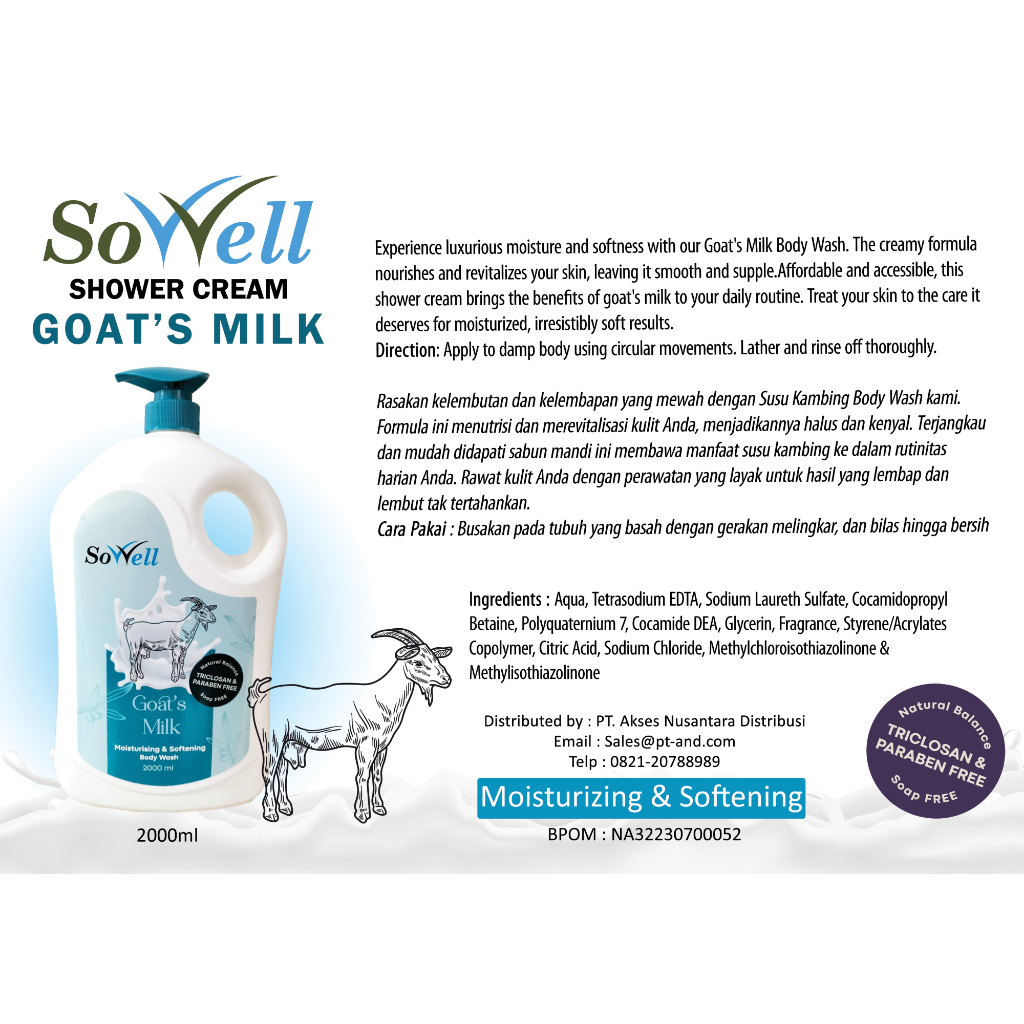 SOVVELL Shower Cream Goat's Milk 2000ml sabun mandi cair import dari malaysia