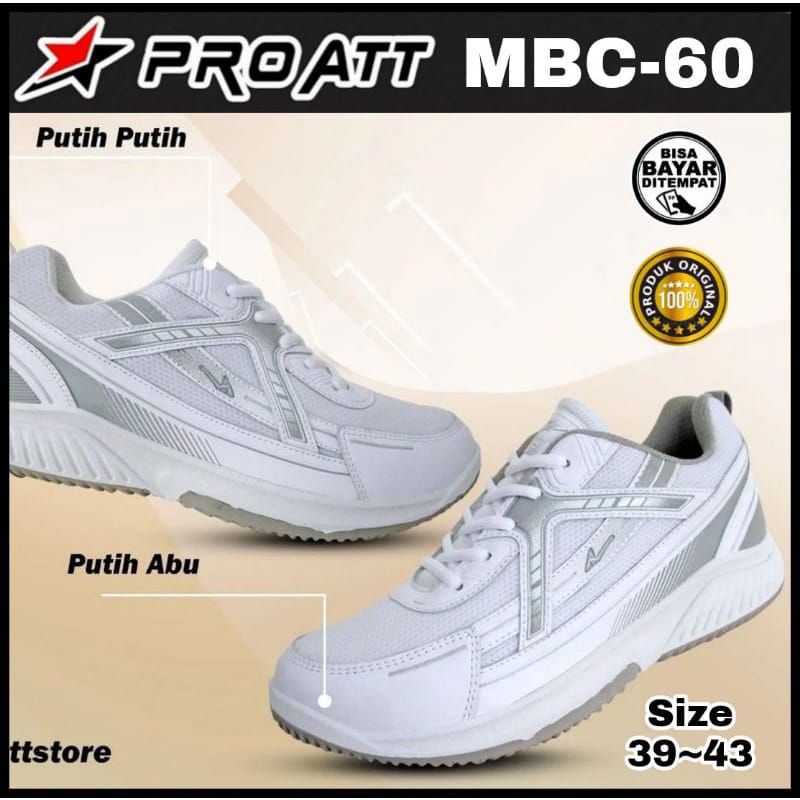 Sepatu Badminton Volly Pria Lelaki Laki Sport Pro Att Mbc 60 Original Putih Abu Premium Berkualitas