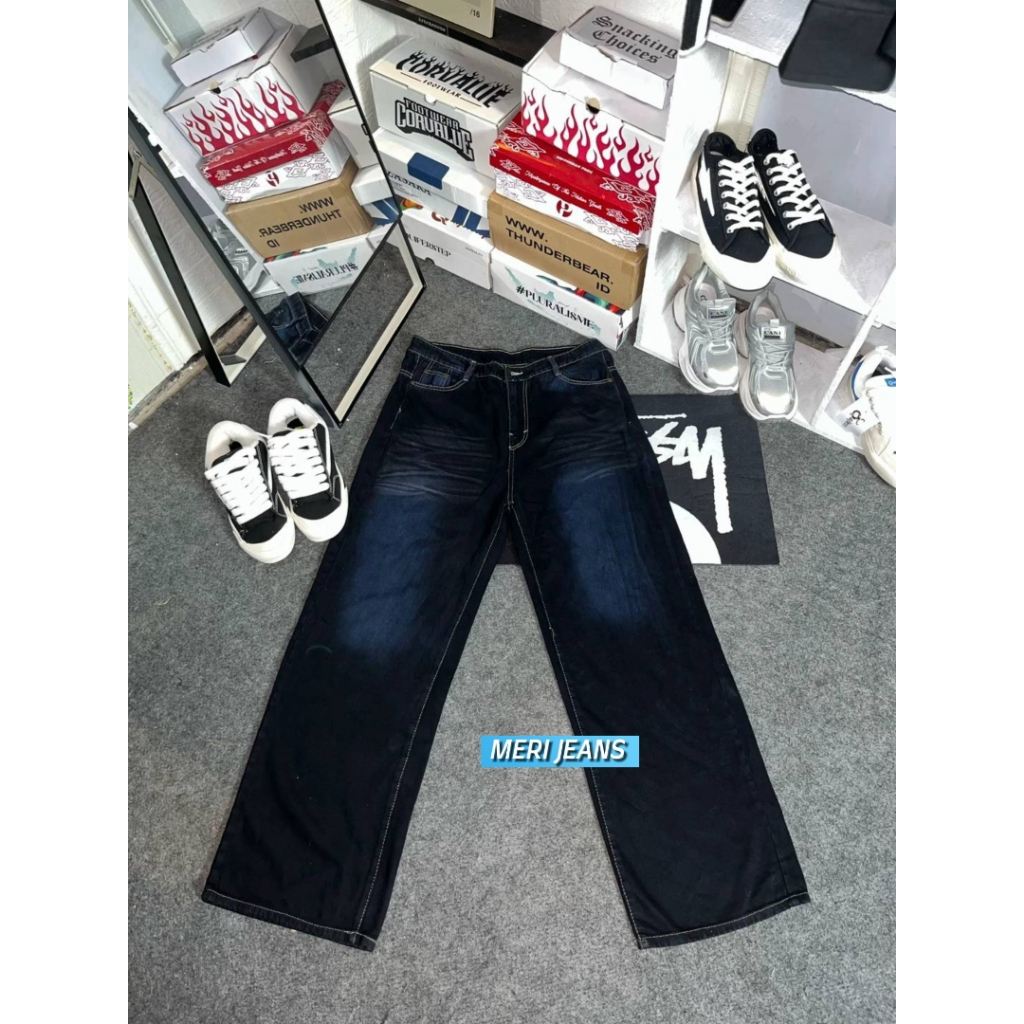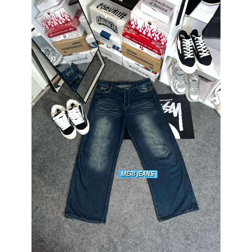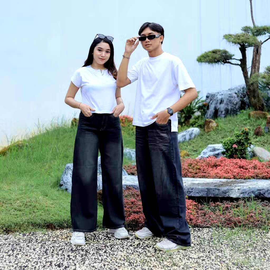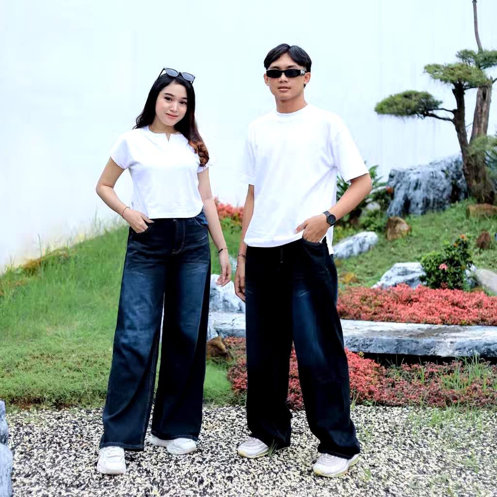 Celana Baggy Jeans Unisex Wanita Pria Gombrong High Waist Loose Fit Korean Style Kekinian Size 27–38