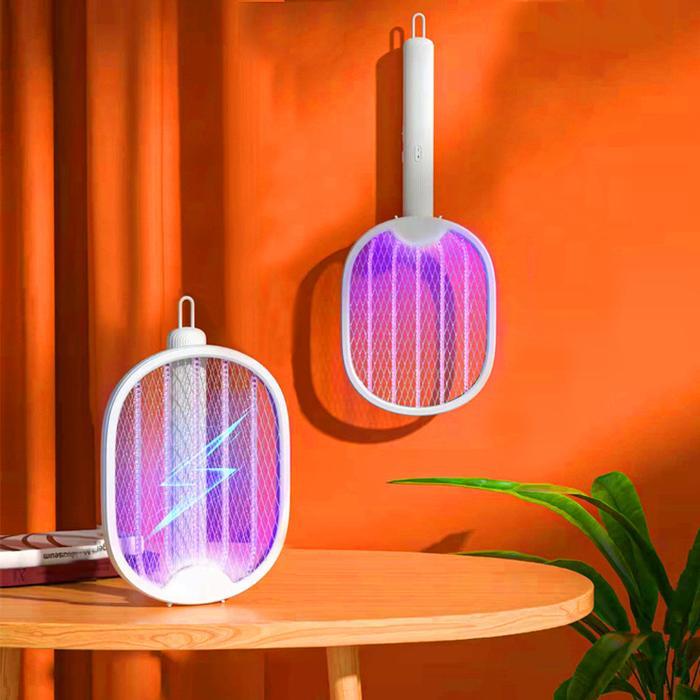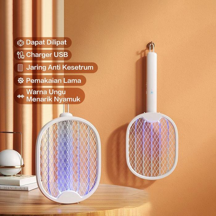 Raket Nyamuk Isi Ulang / Rechargeable Mosquito Trap / 2 In 1 Raket Nyamuk Putih