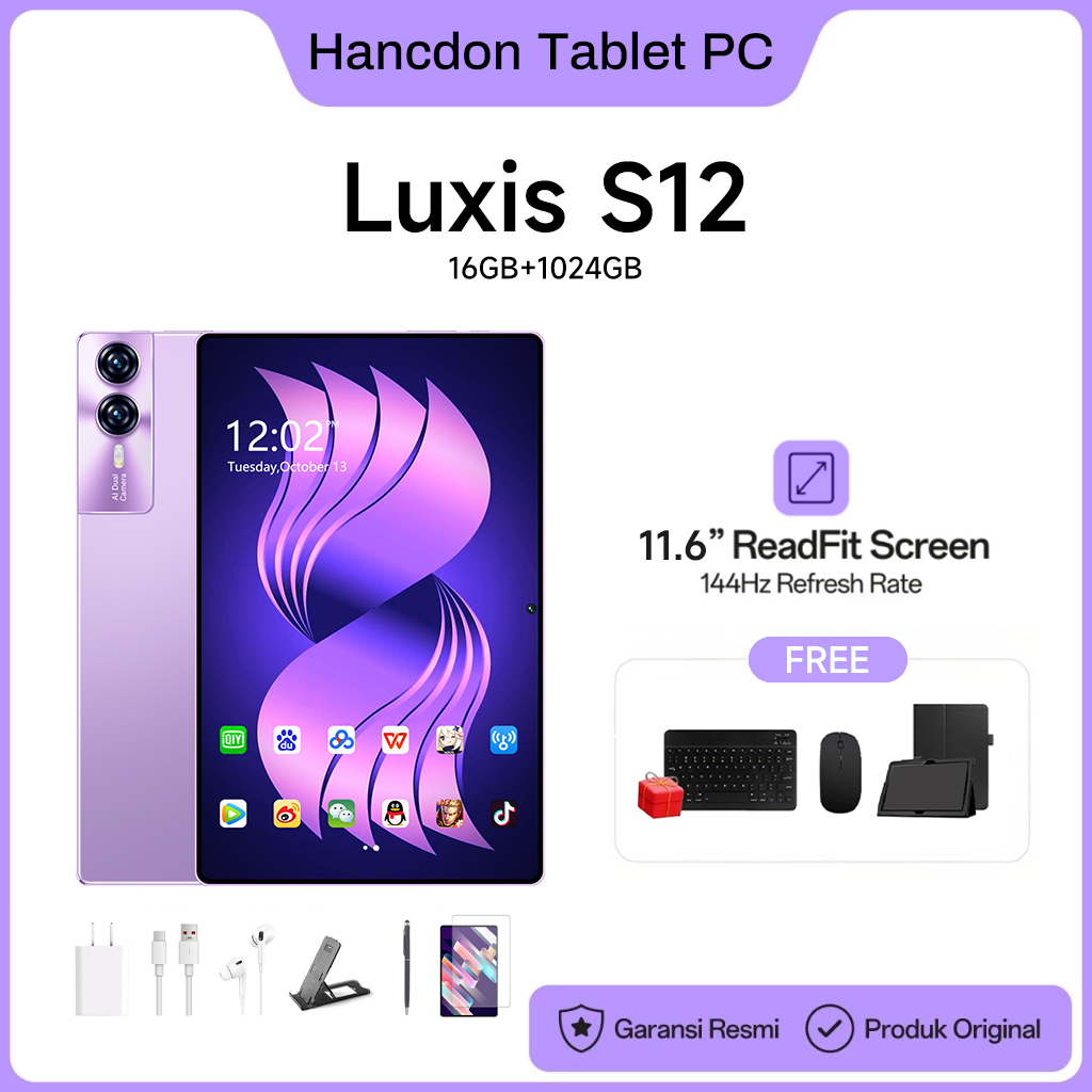 【Free Mouse Keyboard Case】Luxis Tablet PC Tablet Android S12 (16GB+1024GB) 11.6inch"lPs ScreenTablet Android13 8800 mAhDual SimCardadvanTablet Murah100ribuan AnakTablet android murah