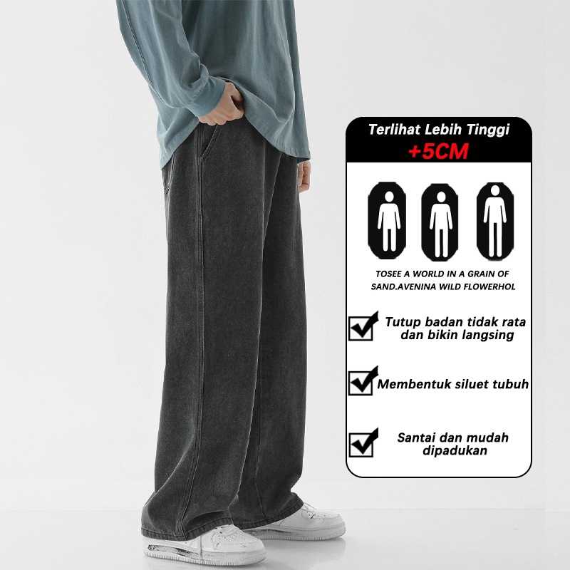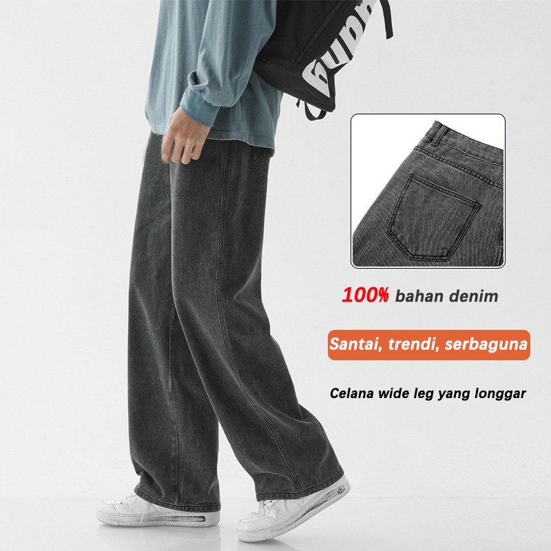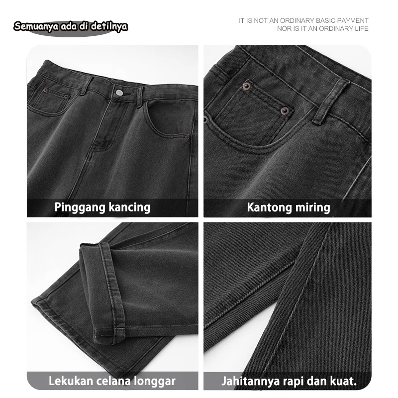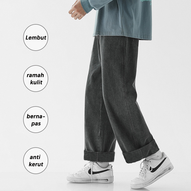 Celana jeans pria korean style celana panjang Hitam loose jeans Celana kulot pria baggy pants boyfriend jeans 2025