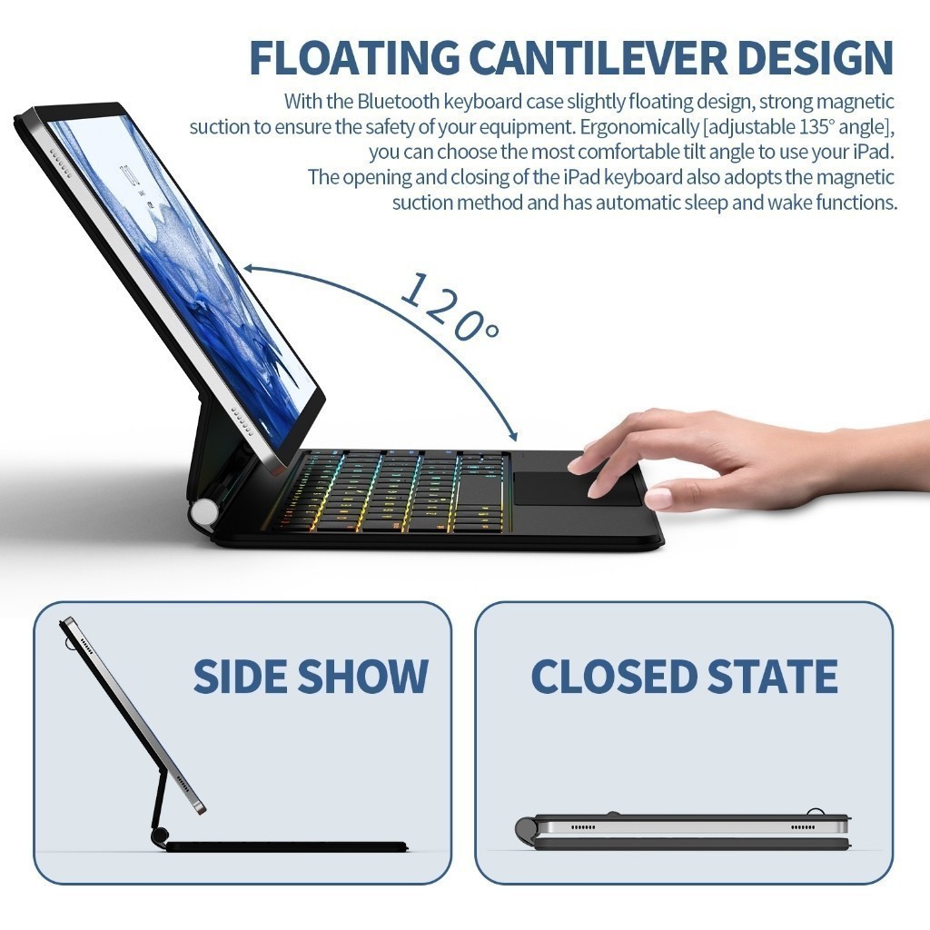 Goojodoq Magic Keyboard Case Wireless Bluetooth for Samsung Galaxy Tab S8/S7/S9 11 inches
