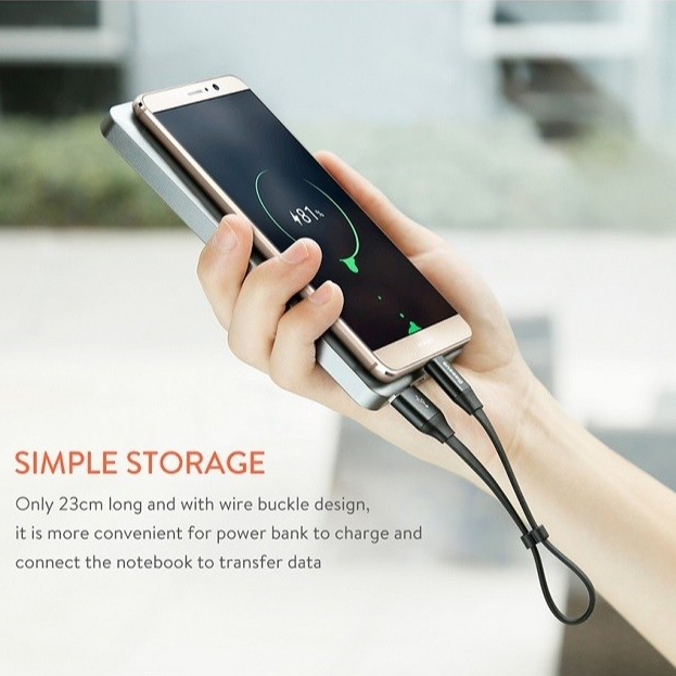Baseus Kabel Data Pendek USB to Type-C untuk Powerbank Nimble Series Portable Cable Black
