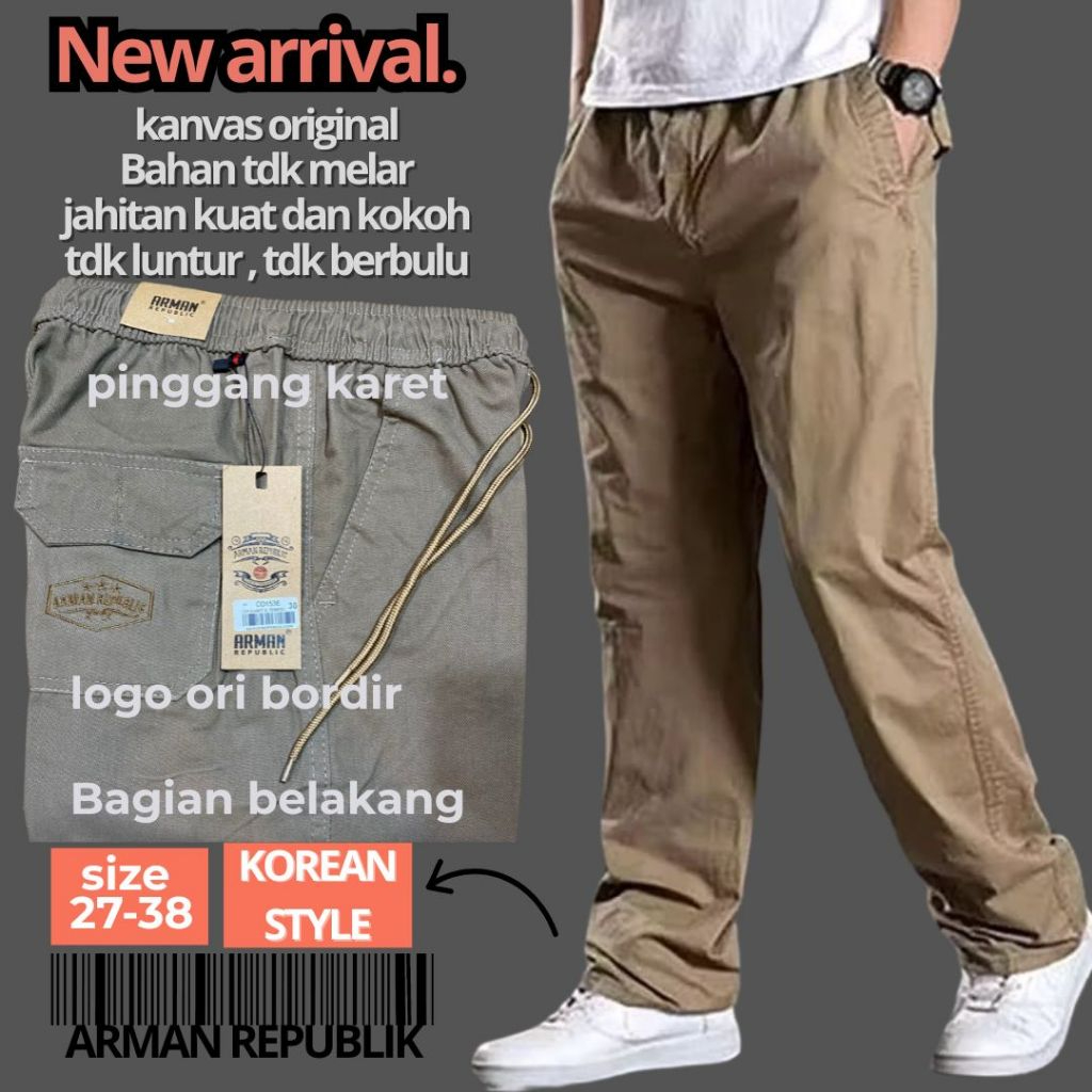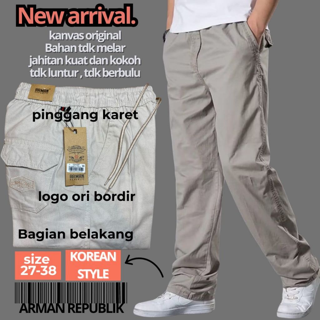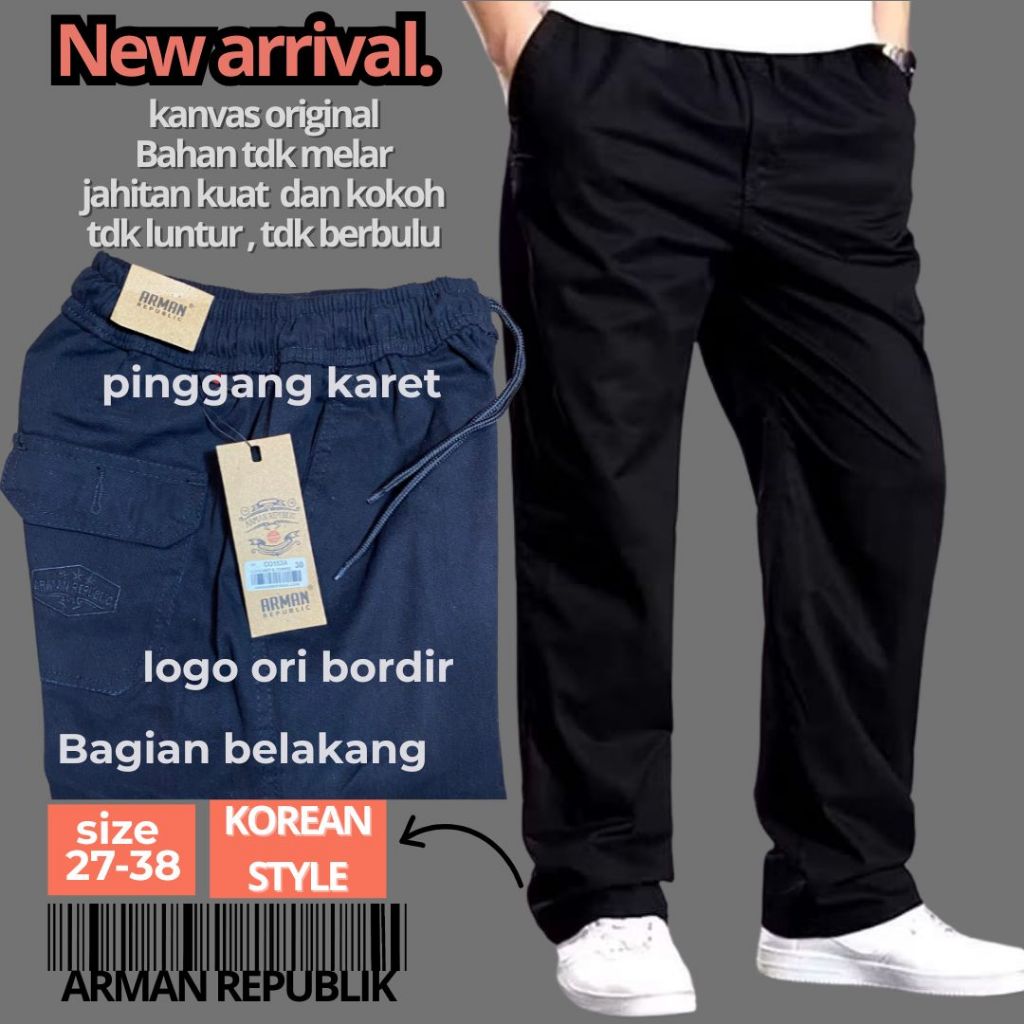 ARM Celana Pria Panjang Skena Baggy Pants Bahan Canvas Tidak Melar Korean Style Gombrong Longgar