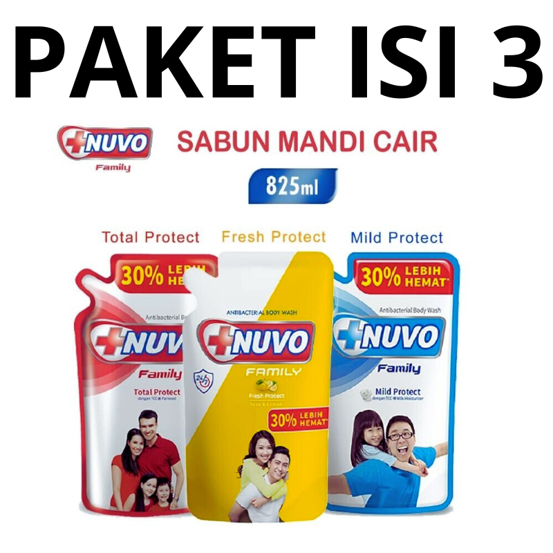 (Paket Isi 3) Nuvo Family Sabun Cair 825 ml/ 800 ml X 3 Pcs