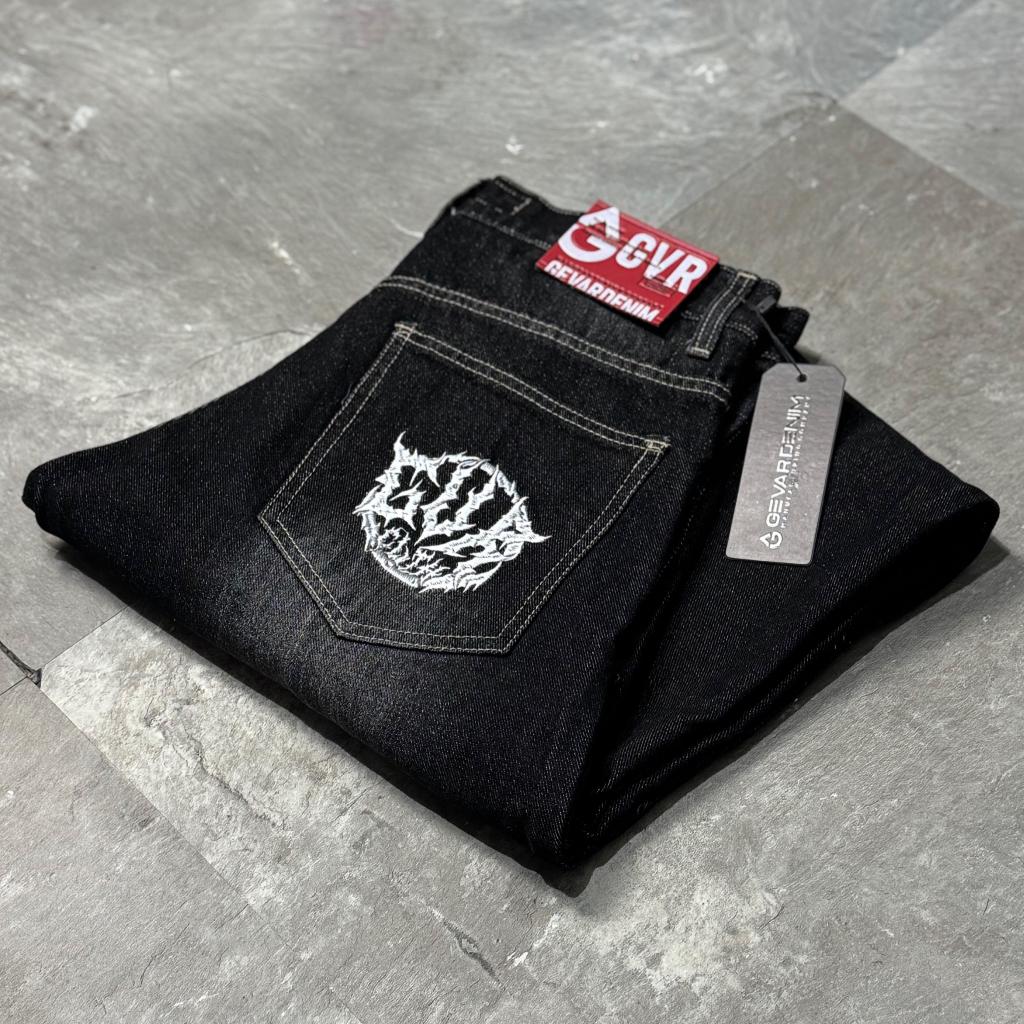 GEVAR - Celana Jeans Baggy Blackwash Pecah Pola Oversize Gombrong