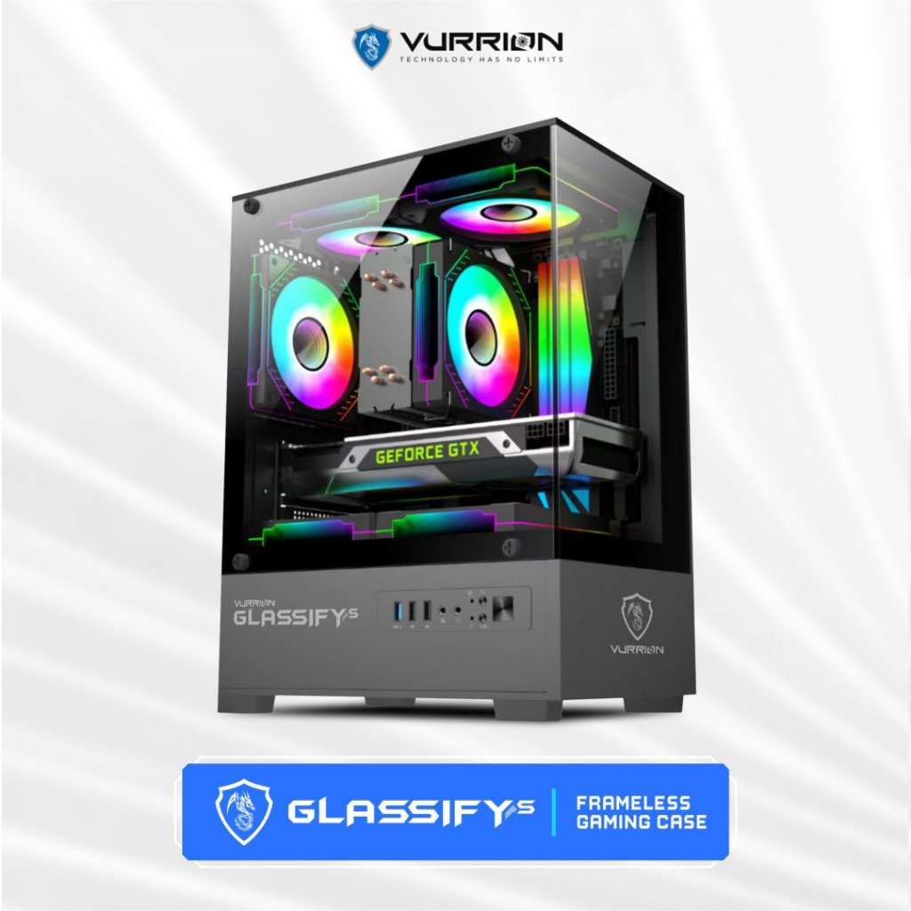 Casing Gaming Vurrion Glassify's Hitam Putih Include Fan 3